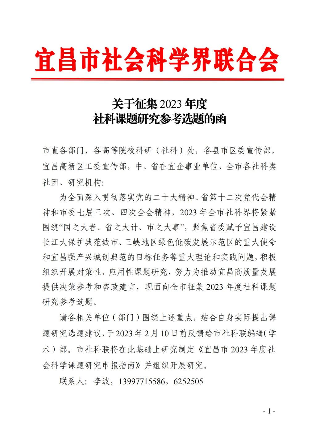 宜昌市社科联关于征集2023年度社科课题研究参考选题