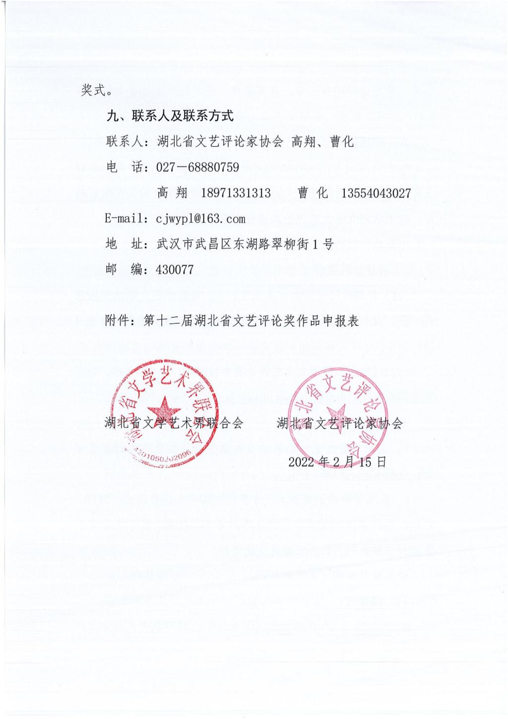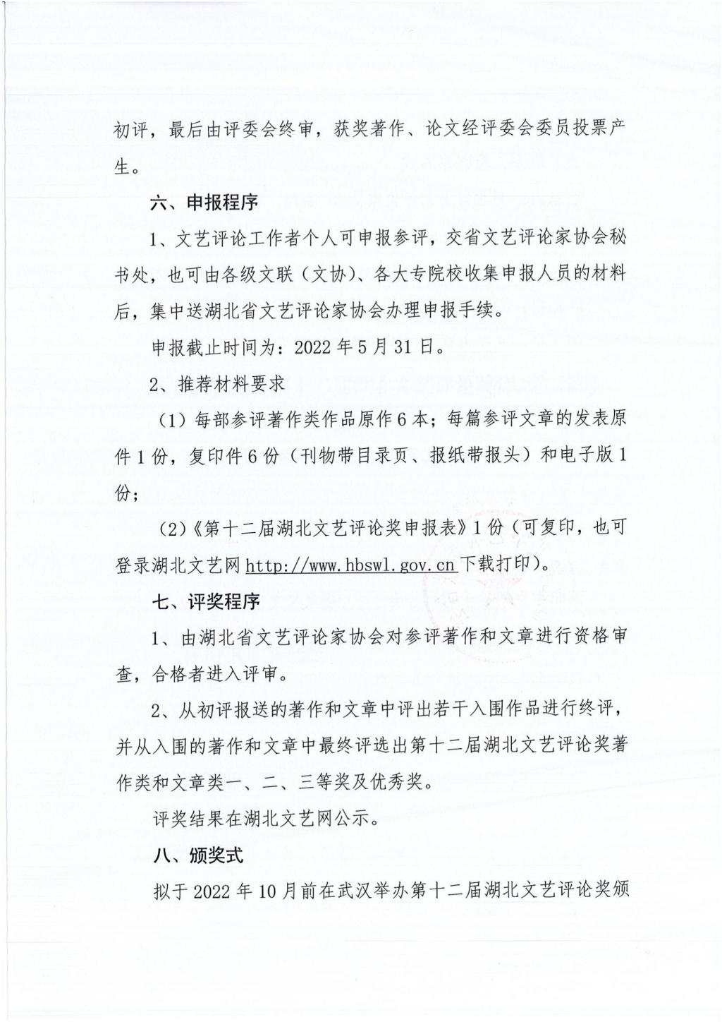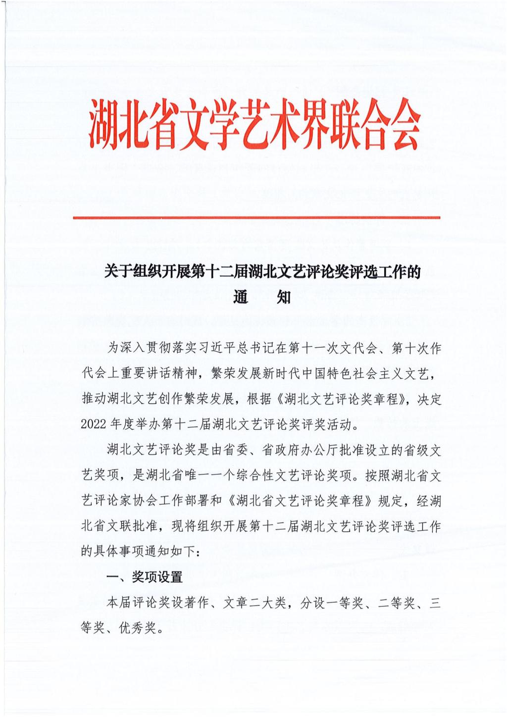关于组织开展第十二届湖北文艺评论奖评选工作的通知